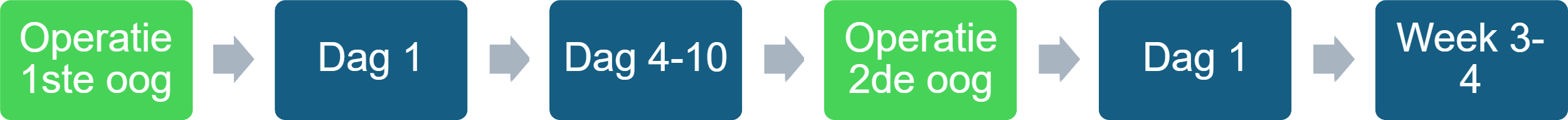 Bij operatie aan de beide ogen worden de controles als volgt gepland: